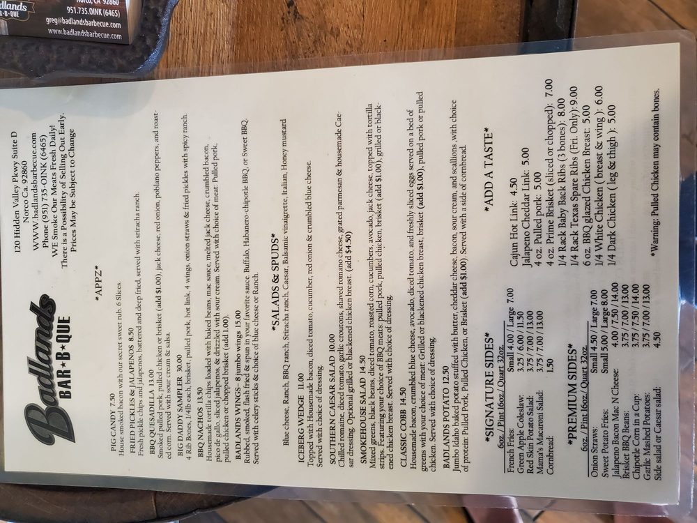 Nestled in the heart of Norco, California, Badlands BBQ is a hidden gem for barbecue enthusiasts looking for a unique dining experience. This beer bar and barbecue joint offers a plethora of amenities to ensure a comfortable and enjoyable visit, including delivery, takeout, reserved seating, and wheelchair accessibility. With a focus on customer satisfaction, Badlands BBQ goes above and beyond with features like ADA-compliant entrances, closed captioning on TVs, and even complimentary Wi-Fi.